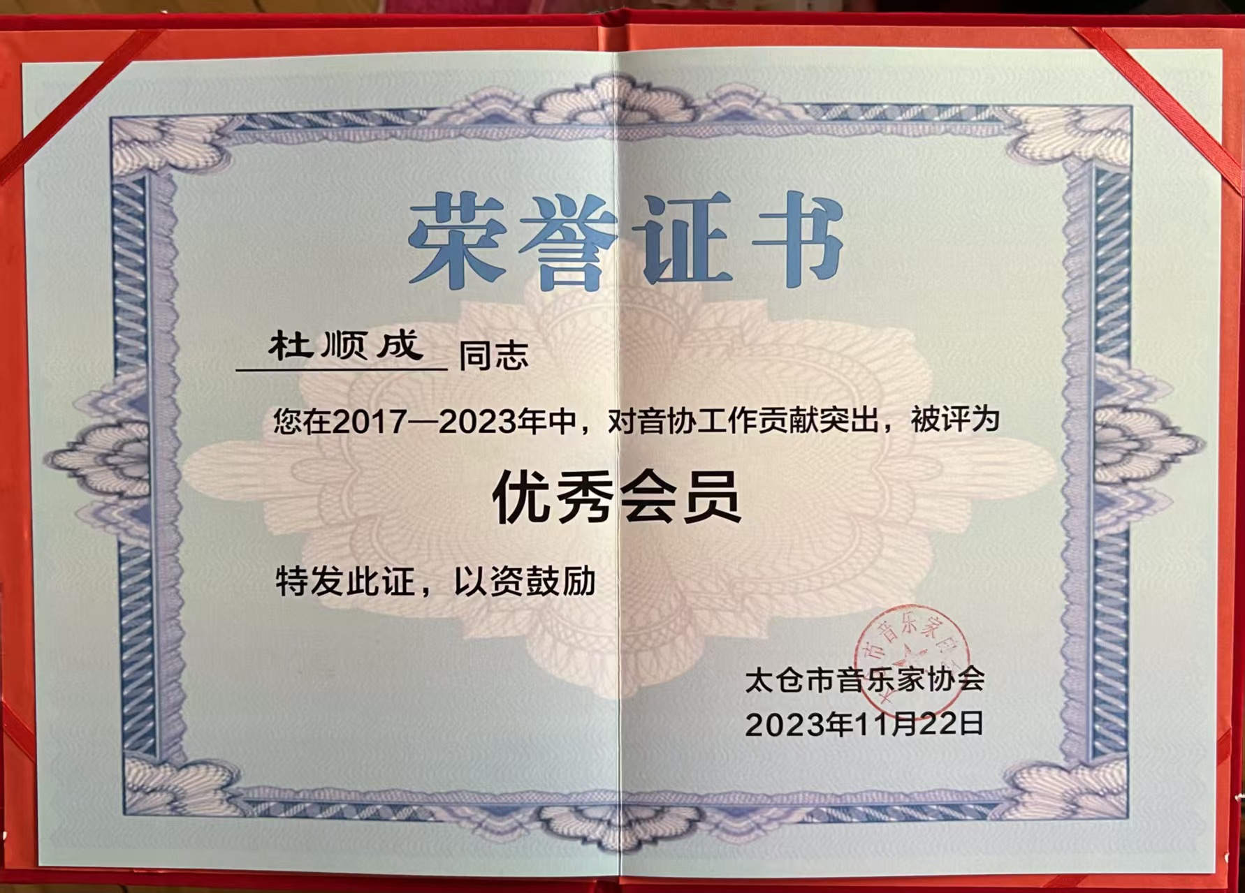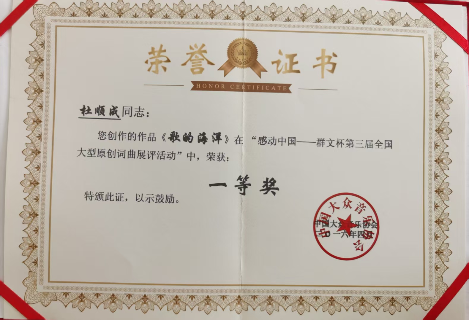 走进杜老师的书房,看到最多的是一橱获奖证书和奖杯。她曾被授予太仓市老艺术家、太仓十佳老有所为之星、太仓老年大学优秀教师等多项荣誉称号,她所创作的作品也频频获奖。谈起这些证书和奖杯的故事,杜老师都如数家珍。她说:“作为一名退休教师,我一直以自己的座右铭‘生命不息,音乐不止’激励自己,多为社会奉献,做到老有所为。”而让她倍感欣慰的是,当年她作曲的原太仓师范学校校歌《太师之歌》至今历届太师毕业生聚会时还不忘高唱。