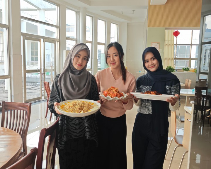 活动现场,各国留学生精心准备了具有代表性的特色美食。意大利籍留学生现场制作了经典的奶油蘑菇意面、手工肉丸和披萨,从揉面发酵到馅料搭配,每一步都展现出意式美食的精致与热情。印度尼西亚籍留学生带来了“印尼鸡汤” 和 “黄米饭”,独特的椰香与香料组合令现场师生赞叹不已。尼泊尔籍留学生展示了传统 “炒鸡”,并详细讲解了这些美食在节日庆典中的特殊意义。韩国籍留学生则带来了炒年糕、泡菜等小吃,吸引了众多师生驻足品尝。中国学生则现场展示了包饺子的技艺,从和面、擀皮到包馅,一道道工序有条不紊,大家一边包饺子一边交流,现场气氛热烈。