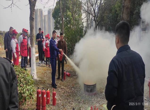 为全面提升学院服务外包人员消防安全意识,切实保障后勤食堂及地超经营体的安全平稳运行,2025年3月11日下午1点40分,学院后勤处与保卫处协同组织食堂餐饮管理人员、地超经营体相关人员开展消防应急演练活动。活动特邀科教新城消防中队专业消防员现场指导,通过理论培训与实操演练相结合的方式,为全体人员上了一堂生动的“安全必修课”。