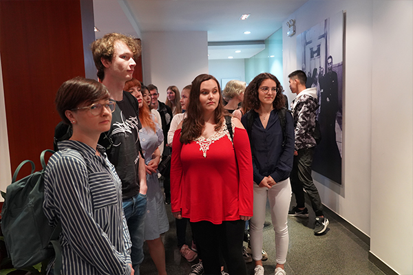 吴健雄是世界著名的女物理学家,有的德国学生早有所闻,有的女生把吴健雄作为人生的追求,令他们惊喜的是,今天来到了吴健雄的家乡,目睹这位科学伟人的风采,他们看视频、听介绍,通过手机微信把照片发到家乡的亲朋好友,共享美好!