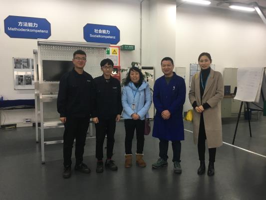 为进一步推进产教融合、校企合作,1月21日下午,中德工程学院模具设计与制造教学团队石彩华老师等一行三人走访DAWT培训中心,与培训中心王振东主任及实训老师交流双元制学徒培养事宜。 DAWT完全采用德国双元制职业培训的模式,以德国商会的行业标准培训专业技术工人,目前由太仓德资企业克恩里伯斯(太仓)有限公司和慕贝尔汽车部件(太仓)有限公司等多家德资企业共同持有,已与我校合作培养学徒近20名。 本次走访过程中,负责学生工作的辅导员、班主任老师看望了正在实训的双元制学徒,主要了解学生项目完成情况,确认假期返乡和年后开训时间,叮嘱学生注意交通安全。负责课程建设和教学工作的老师与培训中心就双元师资共享、实训考核要求等进行了深入交流,争取全面提升学徒专业技能和职业素养。(图/文 王小伟 审核/王志明)