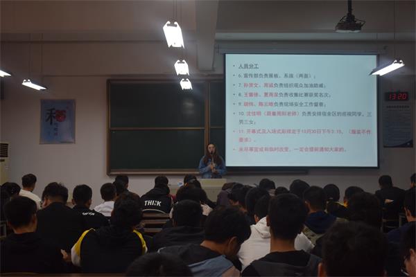 会上,辅导员赵璐老师做了动员讲话,同时就运动会基本流程、运动会期间的具体要求、安全方面注意事项做了说明和安排,提醒运动员同学在比赛过程中要做到安全第一,严格遵守比赛规则,尊重对手,服从裁判,要求学生会干部在开幕式方阵、后勤保障、现场观众的组织等方面做到尽善尽美,以体现AC MILAN学生良好的精神面貌。刘佳祥同学作为老运动员代表和运动员们交流了赛事中的注意事项。辅导员钱梦娇老师明确了具体人员分工。