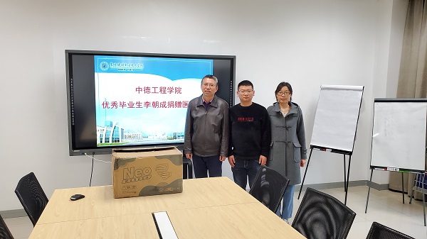 3月26日中午,昆山测惠工业技术有限公司总经理,中德工程学院优秀毕业生李朝成向母校中德工程学院捐赠防疫物资的仪式在A1-201会议室举行,中德工程学院副院长韩树明、团总支书记赵璐出席了本次捐赠仪式。