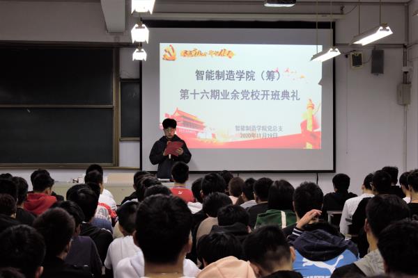11月19日晚,中德工程学院第十六期业余党校开班典礼在C3-501举行,参加开班典礼的有中德工程学院党总支书记孙笪忠、辅导员代表和全体学员,开班典礼由江开同学主持。 典礼在《积健为雄》校歌中拉开帷幕。首先,全体学员起立,奏唱国歌。金琴和刘世航两位同学作为学员代表发言,赵璐老师就业余党校培训内容作了简要介绍,包括纪律、考勤制度、课程设置、考试安排,让大家对本次培训有了进一步的了解。随后,孙笪忠书记为全体学员讲授了“端正入党动机 争做有为青年”为主题的党课。孙书记从什么是正确的入党动机,为什么要端正入党动机,以及如何端正入党动机三方面给学生们讲解了入党动机是入党精神力量的重要性,同时要求学生通过不断参与实践,加强主观世界观改造和脚踏实地学习等三个方面争做一名有为青年。 本期业余党校的顺利开班,有利于AC MILAN学生党建和思想政治教育工作的深入开展,也为AC MILAN完善学生党员发展过程、提升学生的思想认识、优化学生党员质量打下了坚实基础。(图/文 赵璐 审核/孙笪忠)
