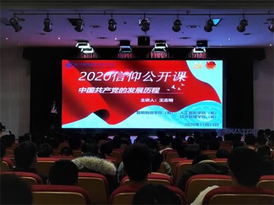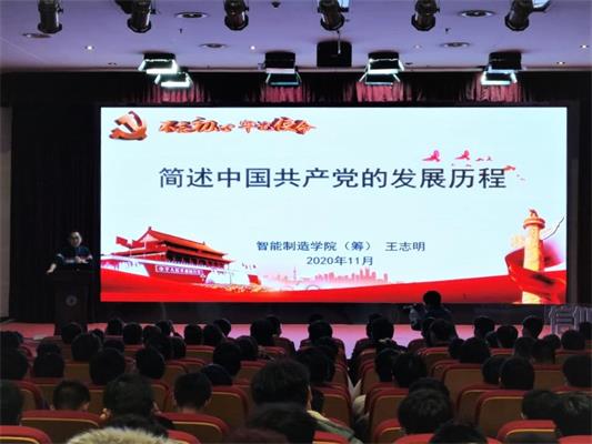 1124日晚,智能制造学院(筹)、人工智能学院(筹)和经济管理学院(筹)携手开展信仰公开课专题讲座活动。智能制造学院(筹)党总支副书记王志明老师为学生干部、业余党校学员和团课学员做了《简述中国共产党的发展历程》专题讲座。