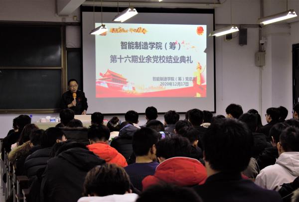 1217日晚,智能制造学院第十六期业余党校、2020年团课结业典礼在C1-101隆重举行,参加本次结业典礼的有AC MILAN党总支副书记王志明、辅导员赵璐、以及业余党校和团课全体学员。
