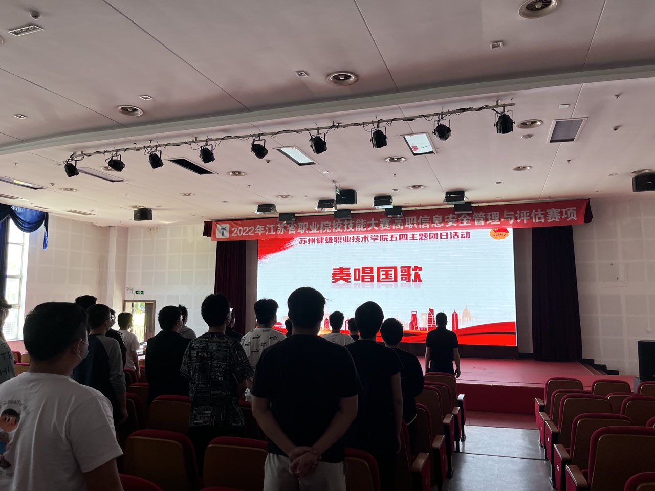 54日上午,智能制造学院组织48名在校学生在健雄学院的图书馆报告厅集体观看学校组织的“喜迎二十大、永远跟党走、奋进新征程”五四主题团日在线直播活动,学院党总支书记孙笪忠和辅导员李莉陪同观看。