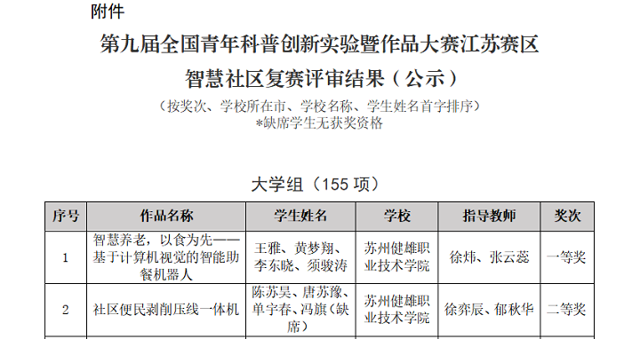 | 智能制造学院在第九届全国青年科普创新实验 暨作品大赛江苏赛区中取得优异成绩 |