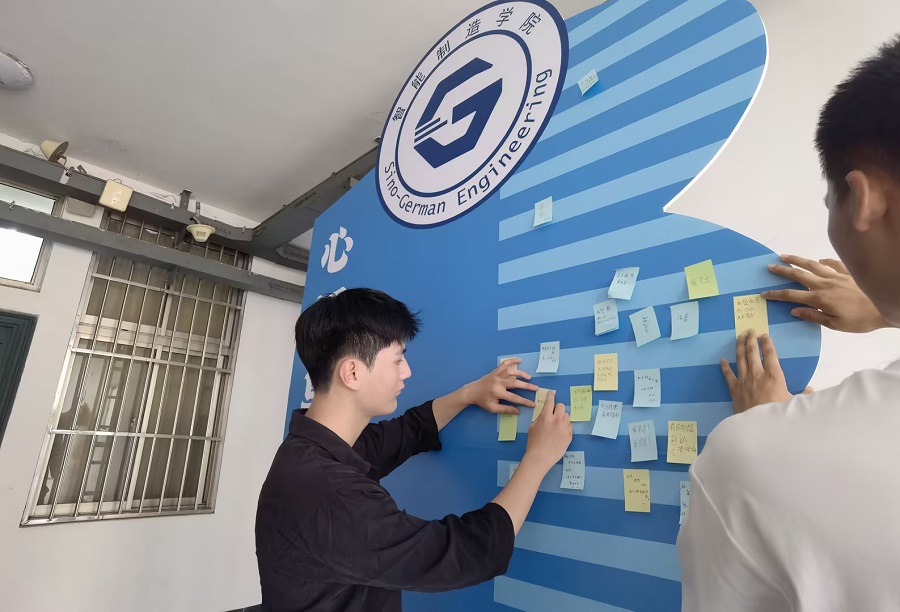 新生在心愿墙上许下新的愿望 学院提前建立了微信群和家长联络群,与学生家长沟通交流,及时解答学生和家长们关注的问题;学生可在班级群和学院网站上提前自助缴费、查询报到流程、锁定宿舍安排,实现人未到校,信息先行。 9月14日报到当天,学生志愿者们早早地活跃在各服务点位。换上了新装的智小匠志愿者们引导新生报到、登记、入住宿舍,详细介绍智能制造学院的特色,耐心解答来自学生和家长们的各种困惑。贴心的“一站式”服务让新生省时省力,大大提高了报到效率。