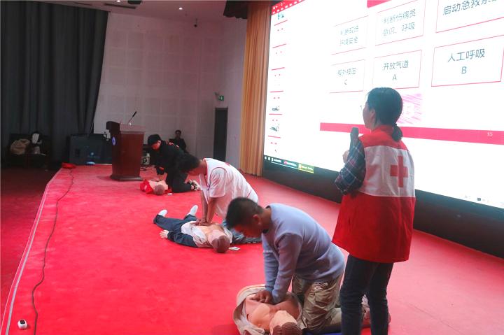 培训现场,老师们介绍了心肺复苏对于抢救患者生命的重要性,详细讲解了心肺复苏的操作要领,并组织各班代表上台练习,给大家一一纠正操作手法,教大家正确完成高质量的心肺复苏。志愿者为上台练习的每位新生赠送了应急救护包。