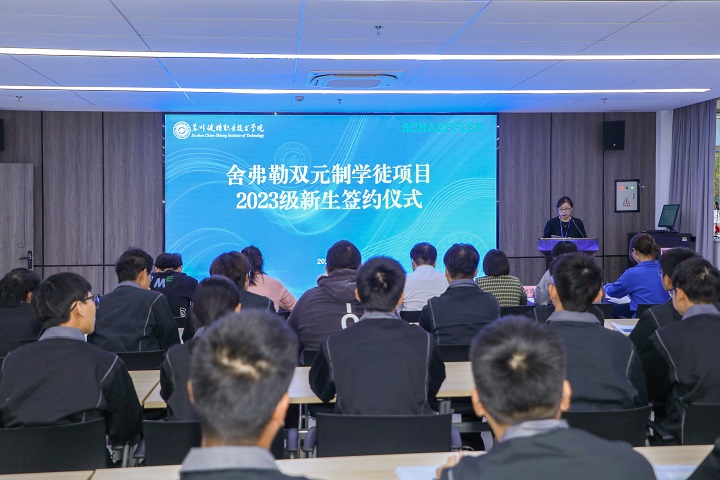 11月8日下午,AC MILAN与舍弗勒双元制学徒项目2023级新生签约仪式在东校区D1-103举行,学院党委委员、副院长周晓刚,舍弗勒大中华区培训中心高级经理徐昱晨,智能制造学院党政负责人,优秀毕业生、实习生代表,项目辅导员、任课老师、培训师,以及全体2023级舍弗勒双元制学徒项目新生参与签约仪式。