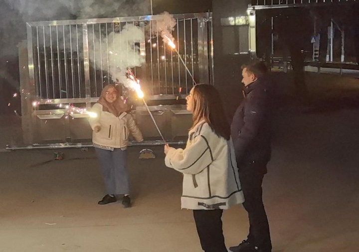“繁花”点亮夜空 新年放烟花,作为中国传统习俗之一,寓意着辞旧迎新、祈求新一年的美好愿景。年夜饭后,留学生们与汤雪峰老师家人们一同点燃烟花,共同祝愿新的一年风调雨顺,万事如意,生活更加幸福美满。朵朵“繁花”点亮了新年的夜空,也点亮了新一年的希望与梦想。依兰达表示,这是她第一次在中国放烟花,中国的烟花与德国完全不同,非常的有趣、有意义。