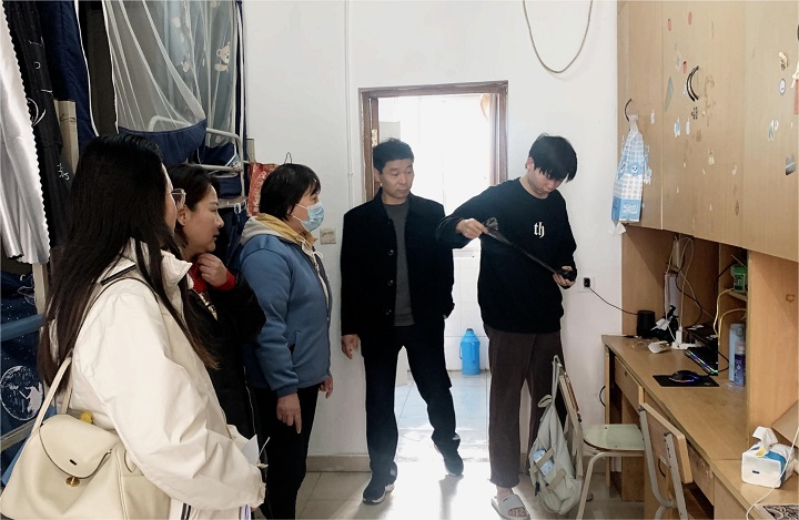 为进一步强化宿舍卫生5S标准化建设、加强宿舍安全管理,促进校园和谐稳定。3月19日,智能制造学院党总支副书记吴成炎、学生处金杰老师、智能制造学院全体辅导员走进学生宿舍,协同宿舍管理员对学生宿舍进行安全隐患大排查与卫生督促,将消防安全知识与温馨关怀带给智能制造学院学子。 此次走访重点关注学生公寓用电安全及宿舍卫生问题。过程中,吴成炎针对卫生环境较差宿舍提出专门整改意见,带动同学现场整改,讲解宿舍卫生5S标准化要求,叮嘱同学们自觉保持宿舍卫生,杜绝使用违禁电器,严格遵守学院宿舍管理规章制度,严防火灾和人身意外事故的发生;随后金杰现场讲解宿舍卫生评分标准,让同学们全面了解宿舍卫生管理要求,号召同学们齐心协力共同营造良好居住环境。 智能制造学院高度重视安全稳定工作,尤其宿舍安全,通过系列走访排查活动,进一步加强同学们安全防范意识。下一步,学院将继续加强宿舍长队伍建设,围绕大学生“安全+”中心要求,不断细化工作,夯实学院安全基础,为学生安全保驾护航。(图文/刘惠杰 审核/周玲余)