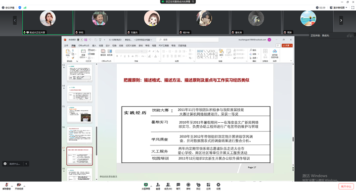 为帮助同学们提升就业技能,提高简历制作水平,进一步强化同学们在求职面试阶段的竞争力。4月11日晚,智能制造学院党总支副书记吴成炎作主讲专家为学生开展线上就业指导专题讲座,21级辅导员及80余学生线上参与讲座。 吴成炎通过引导学生“换位思考”企业HR的选人思维和用人标准,从制作简历的目标、原则和诀窍三个方面进行切入,教会同学们如何为自己的简历“赋分”,制作出岗位匹配度高、内容精准度强的优质简历,吴书记还通过“举一反三”的方式结合实际案例讲解,强调在制作个人简历的过程中会出现的个人信息、求职意向、实践经验、个人评价等常见问题、注意事项及制作误区,帮助学生精准对标企业招聘需求制作优质的个人简历。