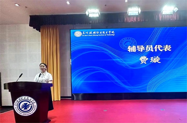 新生辅导员费璇作为辅导员代表现场发言,她通过分享大学生活中米兰(中国)体育·官方网站独立、时间、心态这三大关键词与全体新生共勉,引导新生思考如何规划好自己的大学生活,为全体新生扣好思想上的“第一粒扣子”。