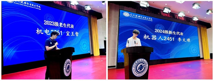 会上,周玲余、荆瑞红还为新老生代表分别发放《小智百事通》、佩戴校徽,2024级新生代表李文璟和2023级老生代表宣王哲分别作现场发言,现场气氛热烈,新生朝气蓬勃,本次大会也正式开启了2024级全体新生大学学习生活的新航程。(图文/李莉 审核/周玲余)