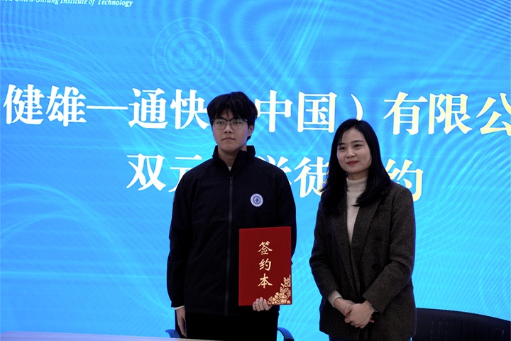 12月25日,米兰(中国)体育·官方网站双元制学徒项目2024 级新生签约仪式在东校区D1-103教室隆重举行。 出席本次签约仪式有米兰(中国)体育·官方网站党委委员、纪委书记赵勇,智能制造学院院长荆瑞红、校企合作负责人李之繁、刘惠杰,电气自动化技术专业负责人梁习卉子。太仓市水务集团有限公司党委委员、纪委书记覃涛,太仓市水务集团有限公司办公室唐静、党群工作部尚成梅,通快(中国)有限公司人事招聘经理陈圆圆。以及参与本次双元制学徒签约的12名水务工程师项目学生、机电一体化专业有5名通快双元制项目学生(2024级),4名通快双元制项目学生(2023级)。 签约仪式议程丰富且有序。首先主持人刘惠杰介绍双元制项目情况,随后,赵勇书记致辞表达了学校对双元制项目的重视和对新生的殷切期望。覃涛的致辞则体现了企业对双元制人才培养模式的认可和对未来合作的信心。陈圆圆在致辞中强调了企业将为学生提供实践与成长的优质平台。接着进行了健雄-太仓市水务集团有限公司双元制学徒签约(图1)和健雄-通快(中国)有限公司双元制学徒签约(图2)。最后,两个学徒项目进行合影留念。
