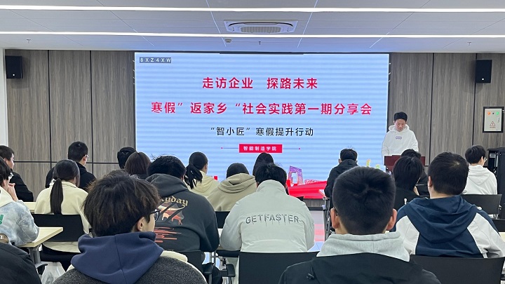 以实践赋能青春成长,用专业书写时代答卷。为深入贯彻落实习近平新时代中国特色社会主义思想,引导青年学子在实践中受教育、长才干、作贡献,智能制造学院于3月11日至25日分三期举办寒假“返家乡”社会实践分享会。三场分享会全面展示智能制造学院学子在企业调研、文化传承、社区服务等领域的实践成果,彰显新时代青年的使命担当。 职场调研:锚定产业发展新坐标 首期活动以“走访企业 探路未来”为主题,8名实践团队成员通过行业调研报告、职业发展图谱等形式,分享深入智能制造企业、乡村振兴一线的实践经历。机电专业夏斯儒同学带领团队绘制“智能+制造”复合型人才能力矩阵,系统梳理行业发展趋势;“智小匠”志愿者服务队创新构建乡村治理积分考核机制,助力人居环境整治。活动通过“职场破壁”互动环节,搭建起校企资源对接平台,为低年级学生构建“学业-就业”动态适配机制提供实践样本。
