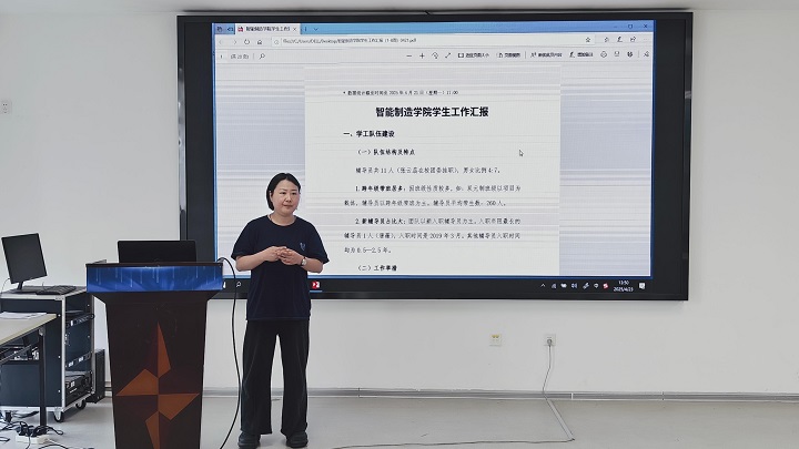 会议尾声,周玲余书记作总结发言。她强调学生工作是学院落实立德树人根本任务的关键环节,全体班主任需提高政治站位,强化责任担当。一是秉持“三全育人”理念,将思想引领贯穿日常管理;二是创新工作方法,结合智能制造专业特色打造品牌活动;三是加强协同联动,构建“三位一体”育人格局,形成育人合力,共同护航学生成长成才。