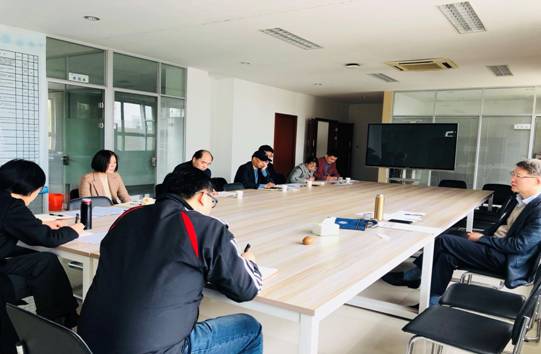在吴园中庭二楼会议室,上午戴勇教授先与高水平办汇合,讨论了在产教融合集成平台管理过程中及专业建设方面的一些问题。下午,重点召集了部分二级项目负责人,戴勇教授详细解答了他们在建设过程遇到的困难和问题,包括时间进度、资金、成果界定等方面。