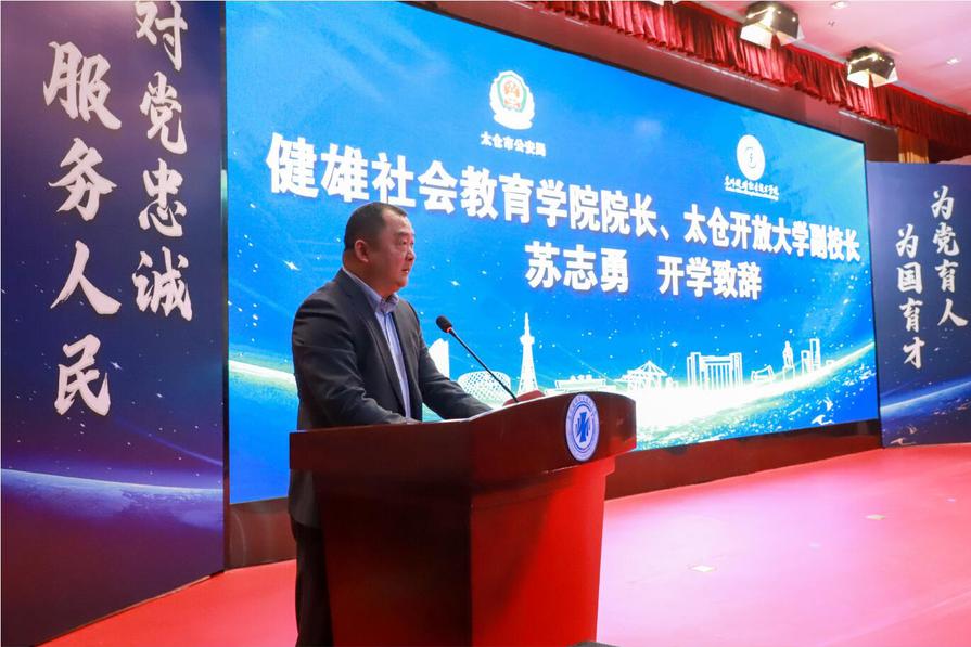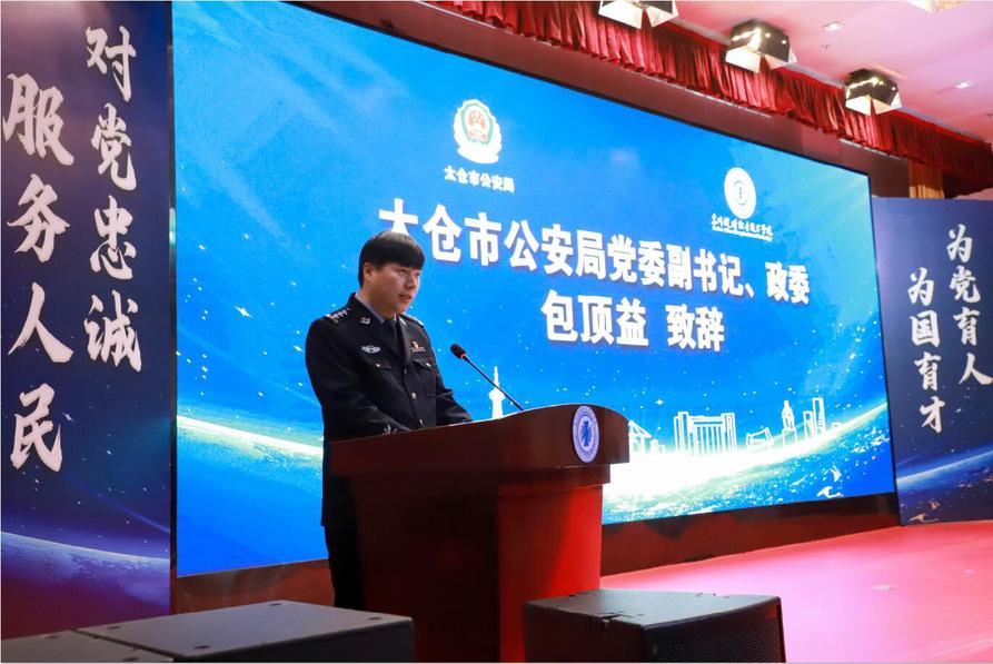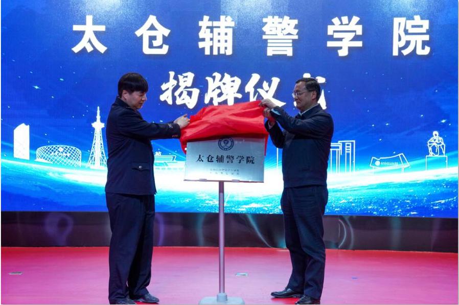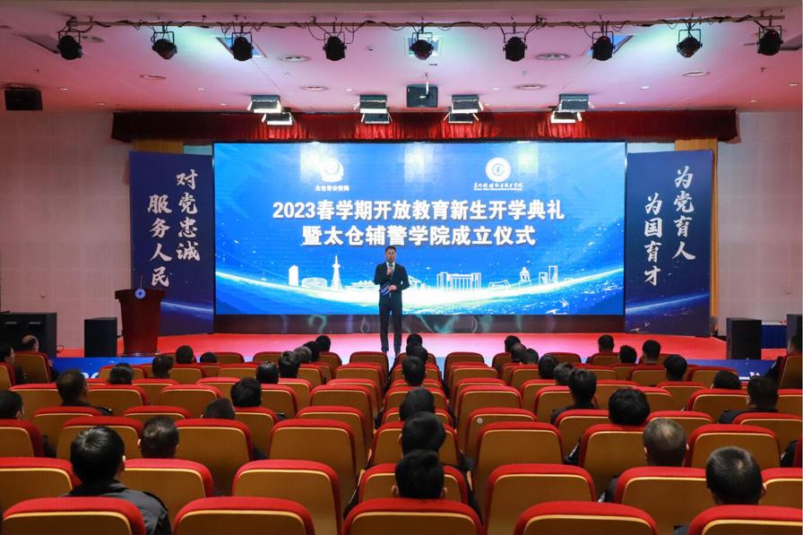 为充分发挥校地合作共建优势,进一步提升全市公安辅警队伍整体素质和能力水平,4月12日,太仓市公安局、苏州健雄职业技术学院共建“太仓辅警学院”签约揭牌仪式暨2023春学期开放教育新生开学典礼在健雄学院图书馆报告厅举行。太仓市公安局党委副书记、政委包顶益,苏州健雄职业技术学院党委副书记、院长林长永,市公安局党委委员、政治处主任郁宏兵,健雄社会教育学院院长、太仓开放大学副校长苏志勇出席活动。