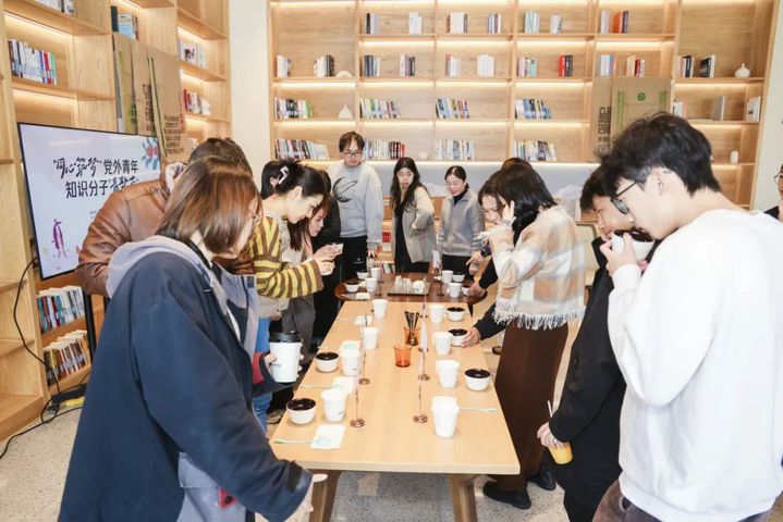 互动活动中,由专业咖啡老师为大家讲解了咖啡的品种、烘焙程度、口感等知识,并带领大家进行了咖啡品鉴活动,享受咖啡带来的独特魅力。同时,手工老师指导青年们制作皮具,从皮革切割到缝制装饰,每一步都充满了创意与匠心,让青年们在实践中深刻感受到手工艺术的魅力。