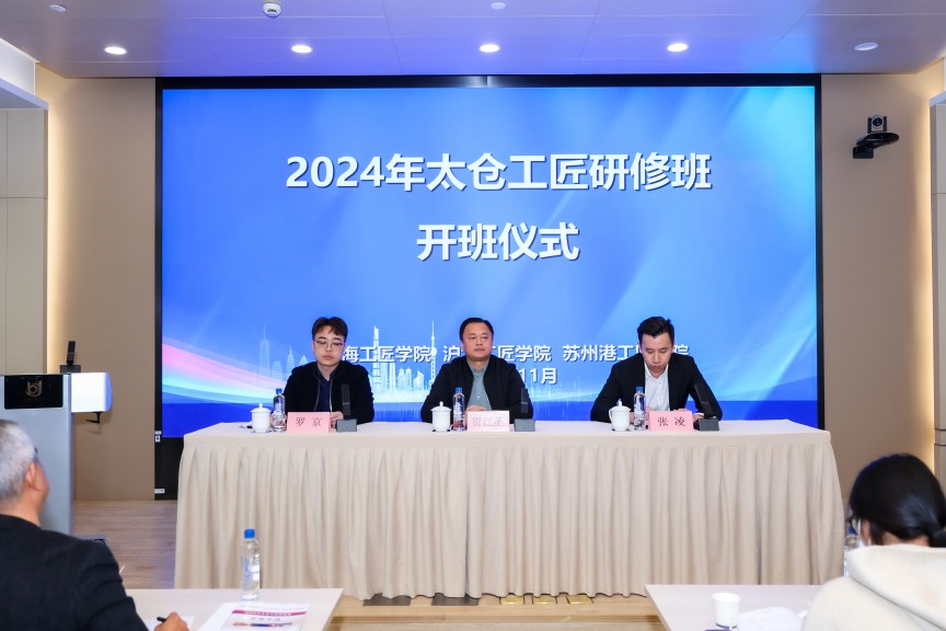 贾红圣在开班仪式上作动员讲话,他指出太仓和苏州港作为长三角区域发展的重要组成部分,在现代物流、先进制造和港口运营等领域取得了显著成就。此次研修班特别面向两地的优秀工匠开设,希望通过搭建学习和交流的平台,助力大家进一步提升技能水平和职业素养,为区域经济和产业转型升级提供强有力的支持。