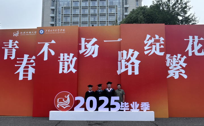 6月14日上午,江苏开放大学2025届学生毕业典礼暨学位授予仪式在南京举行,各市县开放大学设置分会场,云端观礼,共聚一堂,共同庆祝50397名开放教育毕业生、2221名高职教育毕业生圆满完成学业,踏上人生崭新旅程。我校继续教育学院副院长贾红圣与太仓辅警学院三位毕业生代表一起参加了本次活动。
