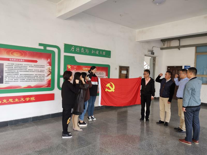 为了深入理解本次主题教育的精神,切实践行“不忘初心、牢记使命”的伟大号召,马克思主义学院在日前举行了 “三学三问”“四重四亮”主题教育活动。在全体教师学习了《大无大有》《江苏赵亚夫:一辈子只为农民富起来》《“人民楷模”国家荣誉称号获得者:王继才一生守护一座岛用平凡铸就不凡》。何茂昌老师结合“不忘初心、牢记使命”主题活动向大家汇报了自己的学习体会与践行情况。在“四重四亮”环节中,全体党员对标了自己的入党志愿,何老师领诵了入党誓词。