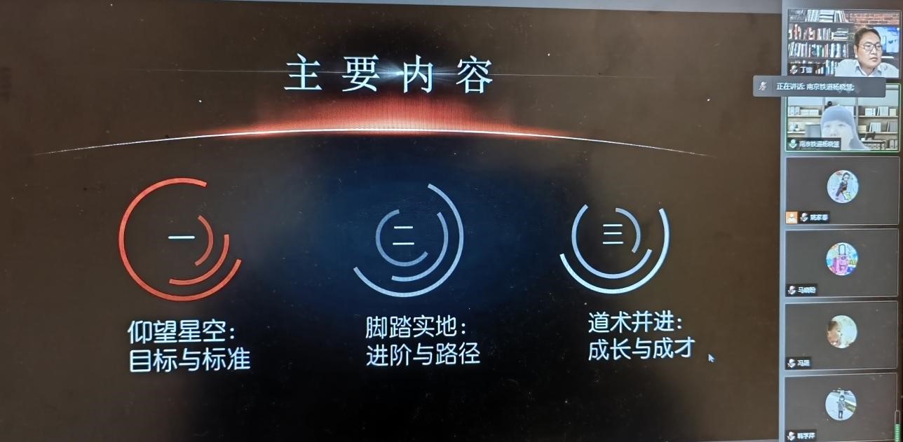 2022年5月26日晚,有幸邀请到南京铁道职业技术学院马克思主义学院杨晓慧院长在线上给我校马克思主义学院思政教研中心全体教师们做了一场既精彩、实用,又具有现实启发意义和振奋精神作用的讲座。学校党委委员丁锴也与老师们一起聆听了本次讲座。
