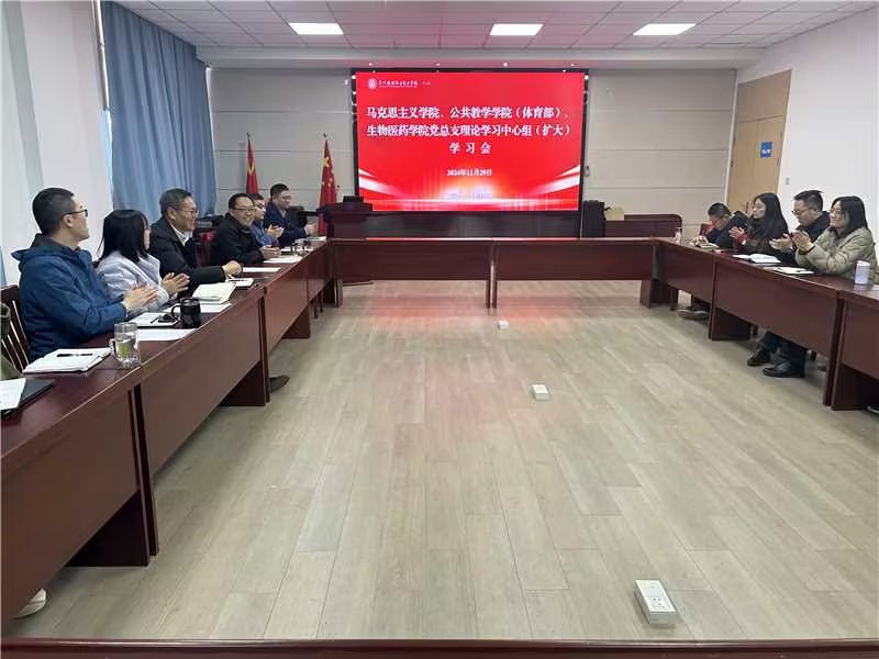 为深入学习贯彻党的二十届三中全会精神,凝聚团结奋进力量,11月29日,马克思主义学院、公共教学学院(体育部)党总支与生物医药学院党总支联合开展理论学习中心组(扩大)学习会。学院党委委员、宣传部(统战部)部长丁锴,生物医药学院、马克思主义学院、公共教学学院(体育部)全体总支委员、支部委员及党员代表参加学习会。会议由生物医药学院党总支书记王志明主持。