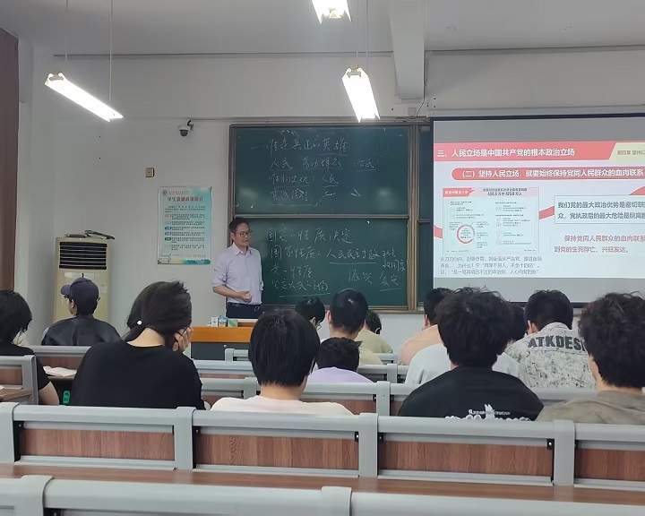为落实《普通高等学校马克思主义学院建设标准》和《全面推进“大思政课”建设的工作方案》等相关文件精神,为进一步贯彻高校党委落实意识形态工作责任制、校领导带头讲思政课相关要求,2025年4月15日,学校党委委员丁锴走进思政课堂,给智能制造学院机器人2411和模具2461班全体同学讲授了一堂别开生面的思政课。