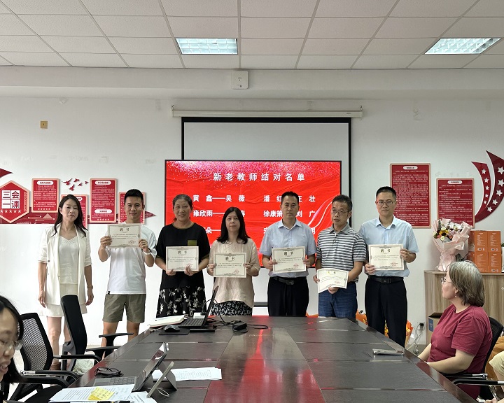 现场举行了新一批师徒结对仪式,周丽雅为指导教师颁发聘书。青年教师向指导教师献上鲜花,缔结师徒情谊,通过“老带新、传帮带”,为青年教师快速成长搭建坚实平台。近三年入校教师庄严宣誓,“我志愿成为一名人民教师,忠诚党的教育事业,遵守教育法律法规……”领誓人陆丽华老师带领全体新教师举起右拳,庄严宣誓,勉励全体教师不忘初心、牢记使命。