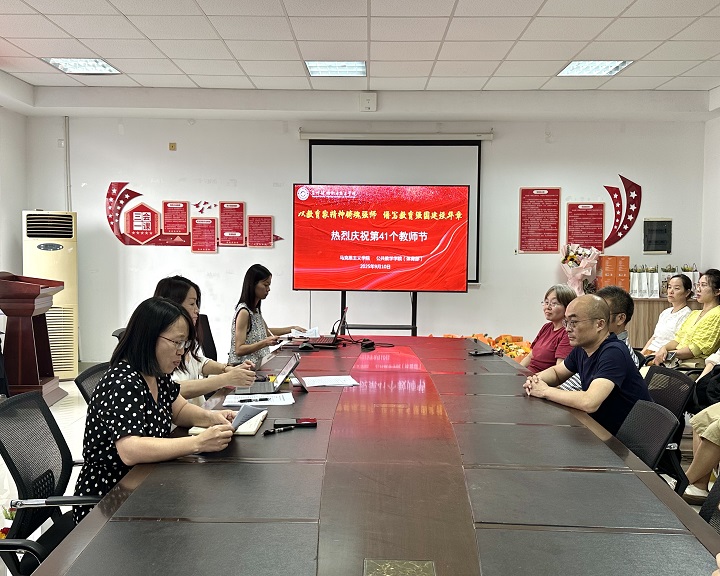 9月10日下午,马克思主义学院公共教学学院(体育部)在C1-202会议室举办庆祝第41 个教师节活动,全体教职工齐聚一堂,共话教育初心,活动由韩学芹主持,围绕 “感恩、传承、奋进”主线,共庆节日。