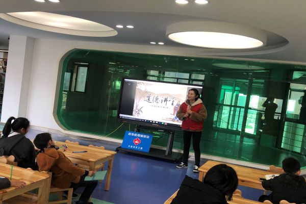 活动当天,志愿者们提前进入宣讲室准备宣讲材料和卡纸。活动最开始,志愿者们通过演讲的形式,结合PPT,图片,视频给小朋友们进行道德宣讲,通过浅显易懂的道德小故事,引出道德主题,引导小朋友们更好的理解道德修养的含义,领悟其重要性。随后,志愿者们和小朋友们一起绘制道德小卡片,把他们印象最深的道德小故事写在贺卡中,并把做好的道德小卡片彼此交换,相互学习。