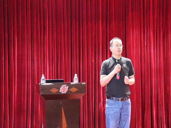 蓝甲虫CEO、CCF苏州秘书长、苏州市计算机学会执行秘书长、CCFYOCSEF2016-2017苏州主席、中科院自动化苏研院副院长王涛总裁做了《人工智能时代的计算力之道》的报告。王总从AI时代的计算力需求、AI FPGA操作系统与平台、计算加速及应用解决方案、人才与培训等四个方面进行了精彩阐述。对计算机专业的学生提出了能从计算机系统的高度考虑和解决问题,能适应新技术及产业发展所提出的新要求。