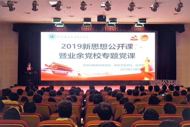 11月28日晚,软件与服务外包学院、中德工程学院以及商学院携手举办新思想公开课暨业余党校专题党课。本次活动特邀中共太仓市委党校副校长印春平老师为同学们做《继承革命传统 坚定理想信念》的专题讲座,三个学院的学生干部和业余党校学员共同参加了本次活动。