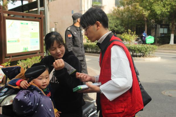 第一部分为向参与本次活动的居民发放科普宣传册,就垃圾分类的基本常识进行宣传,提高居民的环保意识。