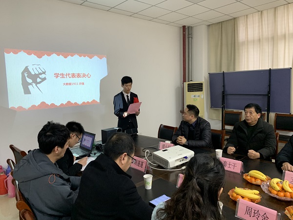 1月2日下午,连云港灌南商会带着对家乡学子的深情厚谊前来资助了软件与服务外包学院的许强等五位优秀的灌南籍学子。软件与服务外包学院党总支副书记周玲余主持本次活动。