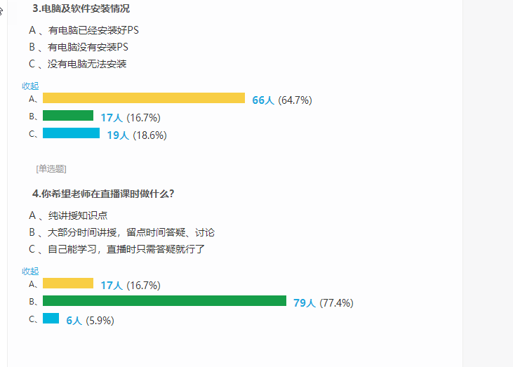 高振清老师的“UI设计”课程在开课前就在泛雅平台上完善了课程资源,提前发布教学任务,并对学生的课前准备情况进行了摸底调研,对直播平台更是进行了多次演练,视频测试,最终选择了腾讯课堂,并准备了备用方案。