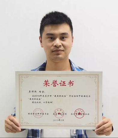 李祥韩: 2018-2019学年国家奖学金、2017-2018学年国家励志奖学金、2019年度苏州市最美职校生、2018-2019学年江苏省级优秀学生干部。