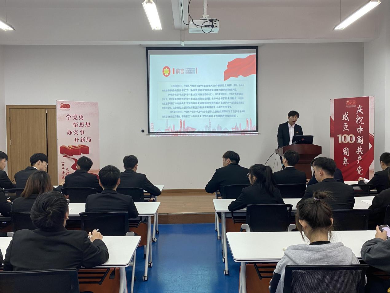 学习后,学生代表积极发言:作为新时代大学生,要深刻领会十九届六中全会的精神实质和丰富内涵,深刻把握实现中华民族伟大复兴这一鲜明主题,弘扬光荣传统、赓续红色血脉,努力学习与成长,为实现中华民族伟大复兴奋斗终身。