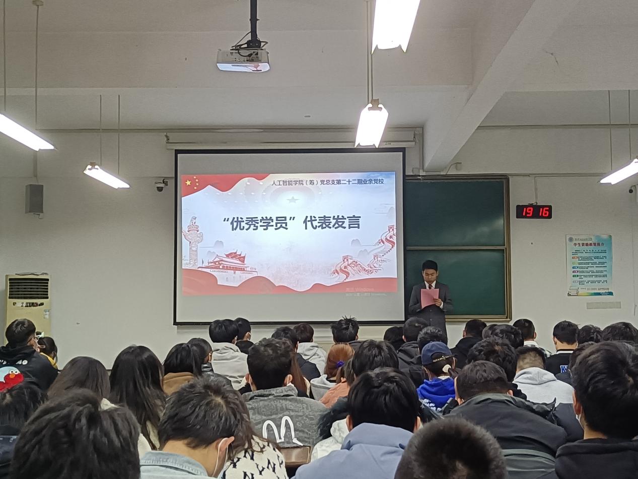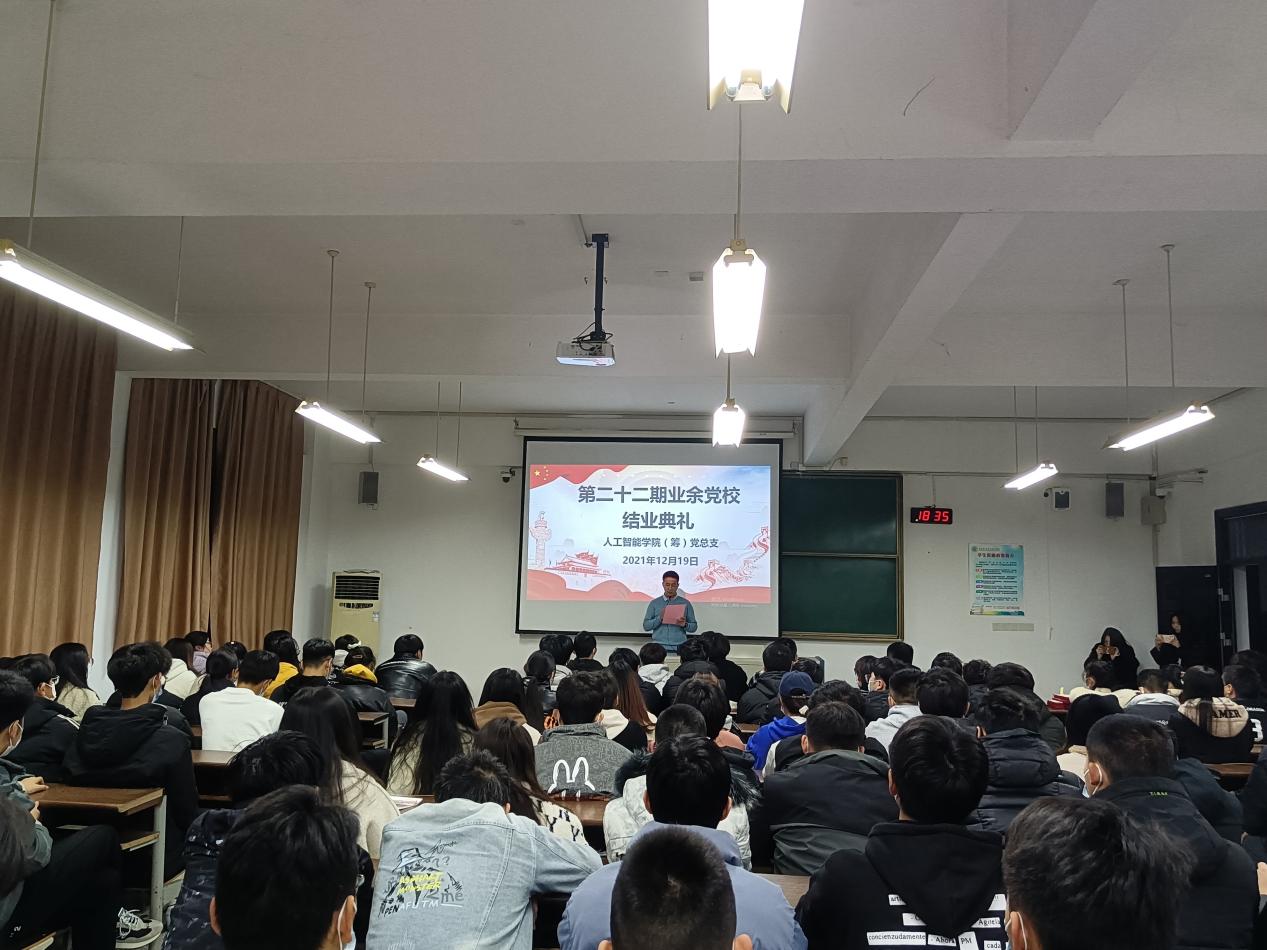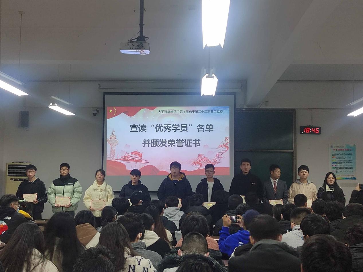 12月19日晚,人工智能学院党总支第二十二期业余党校结业典礼在C1-101举行。结业典礼由学生支部书记周懋怡老师主持。