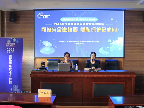 人工智能学院信息安全技术应用专业带头人、省333高层次人才刘静老师助力“党员先锋行”社会实践,于2022年9月7日下午赴沙溪镇第二实验小学,面向六年级师生,围绕“网络安全进校园隐私保护记心间”主题,开展《网络安全及个人隐私防护》的讲座,此项活动是人工智能学院开展“喜迎党的二十大·踔厉奋进新征程”主题活动之“党员先锋行”社会实践活动。