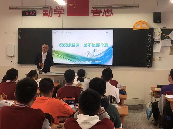 金风送爽,稻谷飘香,正是秋收好时节。人工智能学院“喜迎党的二十大·踔厉奋进新征程”主题活动之“党员先锋行”社会实践活动开展得也是如火如荼。2022年10月9日,院长郑广成教授应太仓市高级中学邀请,为高二学生开展了一场题为《说说那些事、是不是那个理》的讲座。