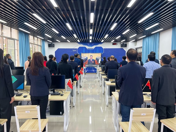 上午9点半,工作人员早早调试好了设备,86寸大屏幕播放着二十大特别节目,39名教职工着正装翘首以盼。当10点的国歌声响起,全场肃立,大家内心澎湃、神情激动,一场承前启后、标志着中国共产党在新的百年征程上大步迈进的盛会正式开幕。教师们认真聆听了习近平总书记代表党中央所作的二十大报告《高举中国特色社会主义伟大旗帜 为全面建设社会主义现代化国家而团结奋斗》。报告内容实在、方向明确、凝聚人心、催人奋进。