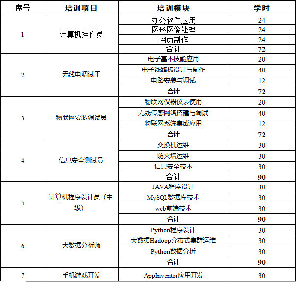 人工智能学院可开出培训项目
