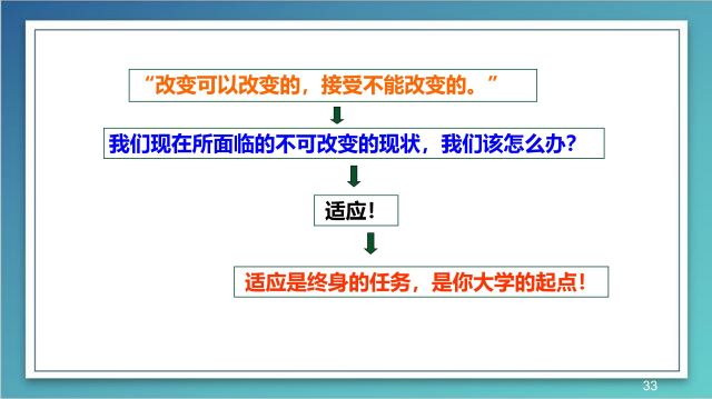 11月13日晚,辅导员罗毅、曹南岚老师主讲《大学生活,从“心”开始——新生心理适应性教育》,从大学生常见心理问题、我们为什么容易出现适应问题、可以做些什么等三个方面详细分析了新生可能遇到的心理困扰,列举了许多贴近生活的案例,深入浅出地讲解了新生容易出现心理问题的原因,鼓励同学们“改变可以改变的,接受不能改变的”,让自己的大学生活充实起来,适应新变化,迎接新自我。