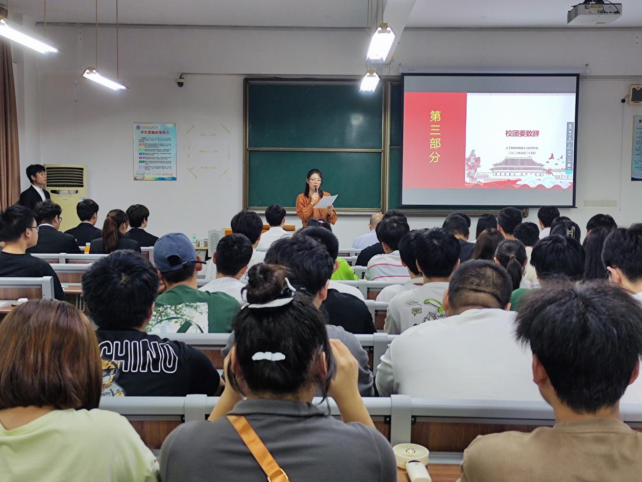 9月25日,人工智能学院第十六次学生代表大会在C1-301隆重召开。校团委书记钱伟钧、院党总支副书记陈东生、院团总支书记周懋怡、辅导员老师代表以及115名学生代表出席会议,会议由张天主持。在全体代表的共同努力下,大会圆满完成各项议程。