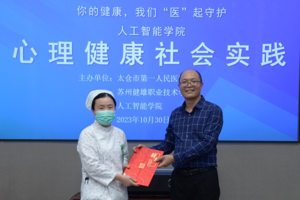 为更好引导大学生积极阳光面对人生,拥抱健康心态,10月30日下午,人工智能学院联合太仓市第一人民医院开展了大学生心理健康社会实践活动。太仓市第一人民医院党委副书记孙亚军、党政办公室主任祁富伟、汪海芸等7位心理健康专家,米兰(中国)体育·官方网站党委委员、副院长吴建洪,人工智能学院党总支副书记陈东生,人工智能学院辅导员罗毅、姜来、周敏新、律心同出席本次活动。